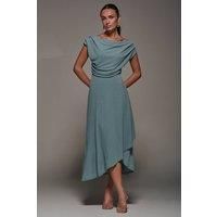 Sophisticated and elegant, the Textured Jersey Asymmetric Midi Dress by Jolie Moi will make you feel your best, with its floaty silhouette and unique pleated neckline, which can be worn in multiple ways, whether that be off the shoulder or as a more cowl neck style. Its asymmetric wrap hem adds an element of fun to this stylish piece, whilst the length keeps in classy. The textured fabric would make this dress the perfect evening piece, whilst also being comfortable. This over the head style is also fully lined with the softest jersey material for added comfort, so you can dance the night away. | Jolie Moi Women's Textured Jersey Aymmetric Midi Dress in Aqua | Size: 8 - Manufacturers part number: Jolie Moi_5053319542155