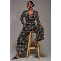 Wrap Tie Waist Jumpsuit by Jolie Moi combines elegance and practicality. Its wrap-front design and self-tie belt create a flattering silhouette, while long sleeves with cuffed button closures add a refined touch. This design is complete with two pockets.