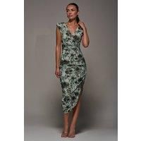 Unleash your inner confidence with the Abstract Ruched Asymmetric Bodycon Dress from Jolie Moi. This stunning piece is designed to sculpt and flatter, making it an essential addition to your wardrobe. With its sleeveless design and flattering V-neckline, this dress highlights your silhouette beautifully. The side ruched detailing adds a touch of texture and elegance, while the self-tie waist belt cinches the waist for a personalised fit. Finished with a chic slit hem detail. | Jolie Moi Women's Abstract Ruched Asymmetric Bodycon Dress in Green | Size: 16 - Manufacturers part number: Jolie Moi_5053319543169