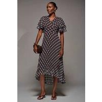 Turn heads in our Angel Sleeve Pleated Chiffon Midaxi Dress, a dreamy choice for your next special occasion. Designed with a flattering V-neckline and floaty, ruffle angel sleeves, this dress brings an effortlessly feminine charm. The pleated skirt flows into an asymmetric hem for added movement and elegance, while the ruched waistband offers comfort. Crafted from lightweight, double-lined chiffon and finished with a concealed zip at the back, its the perfect piece to style to any special event. | Jolie Moi Women's Angel Sleeve Pleated Chiffon Midaxi Dress in Dark Brown | Size: 10 - Manufacturers part number: Jolie Moi_5053319545330