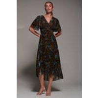 Turn heads in our Angel Sleeve Pleated Chiffon Midaxi Dress, a dreamy choice for your next special occasion. Designed with a flattering V-neckline and floaty, ruffle angel sleeves, this dress brings an effortlessly feminine charm. The pleated skirt flows into an asymmetric hem for added movement and elegance, while the ruched waistband offers comfort. Crafted from lightweight, double-lined chiffon and finished with a concealed zip at the back, its the perfect piece to style to any special event. | Jolie Moi Women's Angel Sleeve Pleated Chiffon Midaxi Dress in Brown | Size: 8 - Manufacturers part number: Jolie Moi_5053319545446