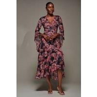 Fall in love with the Ruffle Tiered Midaxi Dress by Jolie Moi, crafted from soft airy mesh fabric, adorned in a feminine floral print. This dress features gorgeous ruffled sleeved detailing, as well as a wrap effect tiered hem which dips at the back. The V neckline provides a flattering look, with under the bust seams that shape the body perfectly, complimented by a V back neckline also. With no fastenings or zips, this over the head style with a soft jersey lining has a comfortable stretch to it, as we...