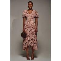Create a standout look this season with our Angel Sleeve Ruffle Hem Mesh Midaxi Dress, a beautifully romantic piece that captures the elegance of soft, layered mesh and a timeless spot print. The soft V-neckline and panelled waist detail shape a naturally flattering silhouette, while short, floaty angel sleeves add a delicate, airy touch. The wrap style enhances the feminine shape, flowing into a tiered ruffle maxi skirt that moves gracefully with every step. Finished with a coordinating waist tie to cinch and define. | Jolie Moi Women's Angel Sleeve Ruffle Hem Mesh Midaxi Dress in Pink | Size: 14 - Manufacturers part number: Jolie Moi_5053319548232