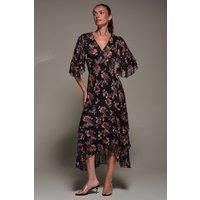 Frill Trim Mesh Maxi Dress by Jolie Moi features soft mesh fabric, a flattering V-neckline with delicate lace trim, and double-layered short sleeves. The gathered bust enhances the bodice's shape, while the fabric tie belt defines the waist. The three-tiered skirt, slightly shorter at the front, offers graceful movement, finished with a lace border. | Jolie Moi Women's Frill Trim Mesh Maxi Dress | Size: 18 - Manufacturers part number: Jolie Moi_5053319550266