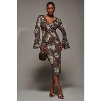 Turn heads in our Frill Sleeve Wrap Midi Dress, perfect for any formal occasion. This dress, crafted from soft mesh material, has a flattering bodycon shape due to its pleated fold detail at the waistband, as well as ruching detailing around the bust. The tiered ruffle sleeves add a feminine touch, adorned an abstract floral print, as well as being full length, perfect for the colder nights ahead. Falling at the perfect midi length, this over the head style also features a round back neckline and has a ruffled collar affect to compliment the sleeves. | Jolie Moi Women's Frill Sleeve Pleated Wrap Midi Dress | Size: 10 - Manufacturers part number: Jolie Moi_5053319550785