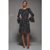 The LongSleeve Chiffon KneeLength Dress by JolieMoi boasts a round neckline at the front and a flattering Vneckline at the back, secured with a discreet back zipper with tie at the back. The sleeves are elegantly finished with two frills, and the hem mirrors this with matching double-tiered ruffle detailing. This design includes two practical pockets. | Jolie Moi Women's Long Sleeve Chiffon Knee Length Dress in Black | Size: 8 - Manufacturers part number: Jolie Moi_5053319554547
