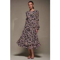 This floaty chiffon piece features tiered ruffle cuffs and a matching hem that sits at the perfect midi length, complimented by a simple round neckline and tie waistband to create extra shape. Featuring discreet front side pockets and a concealed centre back zip, this dress is easy to wear due to its back v neckline, as well as being fully lined for comfort. | Jolie Moi Women's Long Sleeve Chiffon Frill Midaxi Dress | Size: 14 - Manufacturers part number: Jolie Moi_5053319554875