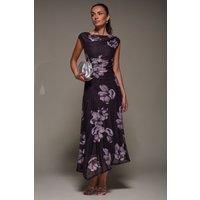 Turn heads in the Slash Neck Ruched Mesh Maxi Dress from Jolie Moi, crafted from the softest mesh fabric that drapes perfectly across the body, adorned in a gorgeous print. Our signature slash neck style features ruched side detailing, flattering the body for that effortless hourglass shape. The dress cascades down to a full-length maxi skirt, elevated by godet panelling for an extra flowy feel. This over the head style is fully lined for comfort, allowing you to dance the night away. | Jolie Moi Women's Slash Neck Ruched Mesh Maxi Dress in Purple | Size: 14 - Manufacturers part number: Jolie Moi_5053319556015