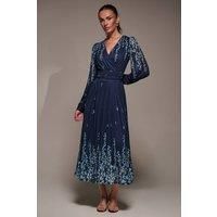 Fall in love with our Long Sleeve Printed Mesh Midaxi Dress, adorned in a feminine print. Featuring a thick flattering waist band, a signature in our Jolie Moi designs, this dress sinches you in perfectly at the waist, whilst also being comfortable. This over the head style is fully lined, with a pleated skirt that cascades down to the perfect midmaxi length. The long mesh sleeves add a touch of elegance, with pleated shoulder detailing and thick cuffs. | Jolie Moi Women's Long Sleeve Printed Mesh Midaxi Dress in Blue | Size: 14 - Manufacturers part number: Jolie Moi_5053319556459