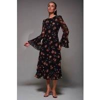 This Long Sleeve Frill Chiffon Midaxi Dress by Jolie Moi features a round neckline at the front and a flattering V-neckline at the back, fastened with a concealed zip and tie. The sleeves are adorned with two frills, and the hem is finished with a three-tier frill, complemented by two functional pockets. | Jolie Moi Women's Long Sleeve Frill Chiffon Midaxi Dress | Size: 12 - Manufacturers part number: Jolie Moi_5053319558798