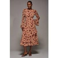 This Long Sleeve Frill Chiffon Midaxi Dress by Jolie Moi features a round neckline at the front and a flattering V-neckline at the back, fastened with a concealed zip and tie. The sleeves are adorned with two frills, and the hem is finished with a three-tier frill, complemented by two functional pockets. | Jolie Moi Women's Long Sleeve Frill Chiffon Midaxi Dress in Coral | Size: 18 - Manufacturers part number: Jolie Moi_5053319558880