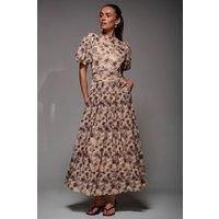 The Puffy Sleeve Printed Mesh Maxi Dress is your next wardrobe staple, perfect for your next autumn wedding. Adorned in a unique print, the soft mesh fabric cascades down to the perfect midmaxi length, complimented by the pleated skirt detailing around the waistband. The high neckline is a classic yet refined feature of this dress, contrasting with the short puffy sleeves which gives this dress a fun and feminine edge. The thick ruched waistband gives this dress a nice structure whilst also being comfortable, being an over the head style which is fully lined. Lastly, the discreet side front pockets add a practical touch. | Jolie Moi Women's Puffy Sleeve Printed Mesh Maxi Dress in Brown | Size: 12 - Manufacturers part number: Jolie Moi_5053319558972