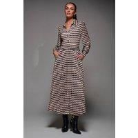 The Long Sleeve Pleated Jersey Maxi Dress by Jolie Moi. Made from soft jersey fabric, this maxi-length dress features a button-up shirt design with a structured collar neckline. It has cuffed long sleeves and a flowing pleated skirt for graceful movement. Fully lined, the dress also includes a tie detail at the back to cinch the waist, along with two discreet side pockets for practicality. | Jolie Moi Women's Long Sleeve Pleated Jersey Maxi Dress in Beige | Size: 16 - Manufacturers part number: Jolie Moi_5053319559535