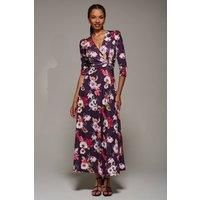 The Jersey Fit Flare Maxi Dress by Jolie Moi features a flattering V-neckline and elegant three-quarter sleeves. A tie at the back cinches the waist, creating a beautiful fit-and-flare silhouette. The front is adorned with a delicate bow detail, adding a unique and feminine touch to this versatile dress. | Jolie Moi Women's Jersey Fit & Flare Maxi Dress in Purple | Size: 14 - Manufacturers part number: Jolie Moi_5053319570196