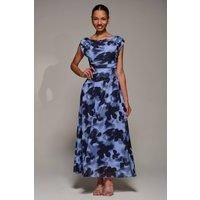 The Asymmetric Draped Dress from Jolie Moi. Featuring a sleeveless design and a soft cowl neckline, the dress is made from lightweight mesh. A thick asymmetric draped waistband with a tie fastening at the back adds structure, while the fully lined maxi length flows gracefully for an elegant silhouette. | Jolie Moi Women's Asymmetric Draped Mesh Maxi Dress in Blue | Size: 12 - Manufacturers part number: Jolie Moi_5053319570950