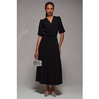 The Puff Sleeve Maxi Dress from Jolie Moi features short puff sleeves and a wrap V-neckline, crafted from soft jersey fabric for all-day comfort. A thick waistband with a back tie shapes the silhouette, while discreet pockets add practicality. Fully lined for a smooth and flattering fit, the pleated maxi skirt flows gracefully to create an elegant, feminine finish. | Jolie Moi Women's Puff Sleeve Jersey Maxi Dress in Black | Size: 16 - Manufacturers part number: Jolie Moi_5053319572008