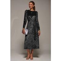 The Long Sleeve Velvet Tie Detail Midi Dress by Jolie Moi features a round neckline and a wrap-front design with a tie detail at the side to accentuate the waist. Finished with long sleeves and crafted from soft velvet, this dress blends comfort with elegance. Model is 170cm and wears a size 8. | Jolie Moi Women's Long Sleeve Velvet Tie Detail Midi Dress in Black | Size: 16 - Manufacturers part number: Jolie Moi_5053319573388