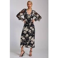 The V Neck Mesh Midaxi Dress from Jolie Moi is made with lightweight mesh fabric. It features a ruffle V neckline with a tie at the back of the neck, cuffed ruffle sheer long sleeves, and is fully lined for comfort. The Midaxi length offers elegant coverage. Perfect for both day and evening occasions. | Jolie Moi Women's Ruffle V Neck Long Sleeve Mesh Midaxi Dress in Black | Size: 18 - Manufacturers part number: Jolie Moi_5053319574385