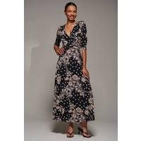 Effortlessly elegant and endlessly flattering, this Jersey Ruched Waist Fit & Flare Maxi Dress by Jolie Moi is your new go-to for every occasion. Crafted from soft stretch jersey, this dress features a timeless V-neckline, three-quarter length sleeves, and a beautifully ruched waistband that enhances your silhouette with a comfortable, cinched-in fit. | Jolie Moi Women's Jersey Ruched Waist Fit & Flare Maxi Dress | Size: 14 - Manufacturers part number: Jolie Moi_5053319574750