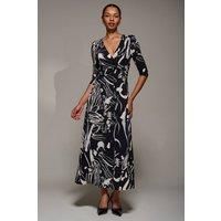 Effortlessly elegant and endlessly flattering, this Jersey Ruched Waist Fit & Flare Maxi Dress by Jolie Moi is your new go-to for every occasion. Crafted from soft stretch jersey, this dress features a timeless V-neckline, three-quarter length sleeves, and a beautifully ruched waistband that enhances your silhouette with a comfortable, cinched-in fit. | Jolie Moi Women's Jersey Ruched Waist Fit & Flare Maxi Dress in True Black | Size: 8 - Manufacturers part number: Jolie Moi_5053319574866