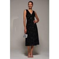 Turn heads in V-Neck Sequin Embellished Velvet Midi Dress by Jolie Moi. This stunning sleeveless dress are featuring a flattering V-neckline and a softly flared skirt. Crafted from luxurious velvet with glittering sequin embellishments, it catches the light beautifully with every step. Perfect for evening events, parties, or special occasions, this dress combines timeless elegance with a modern sparkle. | Jolie Moi Women's V-Neck Sequin Embellished Velvet Midi Dr in Black | Size: 14 - Manufacturers part number: Jolie Moi_5053319576419