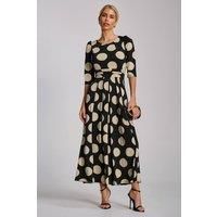 The three quarter sleeve jersey maxi dress by Jolie Moi features a round neckline with delicate pleats, a ruched waistband with two pockets, and a flowing pleated skirt. The 3/4 length sleeves are slightly gathered, and finished with a tie at the waist. Models height-170cm, and wears size 8, length 130cm. | Jolie Moi Women's Three quarter sleeve jersey maxi dress | Size: 20 - Manufacturers part number: Jolie Moi_5053319577157