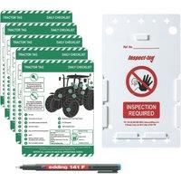 Kit containing 1 x ABS plastic holder, 5 x polypropylene inserts and pen. Inserts feature pre-use operator checklist on front and space for up to 32 inspections. Accurate & Up-to-Date Record Keeping Space for 32 Inspections Accurate & Up-to-Date Record Keeping Space for 32 Inspections - Manufacturers part number: 189YU