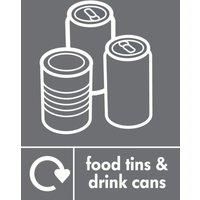 A4-sized vinyl sign for food tins and drink cans recycling. Self adhesive. For Interior & Exterior Use Vinyl For Interior & Exterior Use Vinyl - Manufacturers part number: 621YU