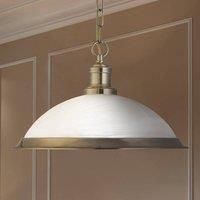 Subtly designed Bistro hanging light with nostalgic finish Suspended from its sturdy suspension chain, the antique design Bistro hanging light presents itself to you at the perfect height. The glass, satin-finished lampshade with its elegant marbling is framed by a bracket made of brass with an antique gold finish. The narrow strip on the edge of the shade has the same appearance. Inside the lampshade is the E27 socket for the bulb. This spreads a cosy light in any room in your home regardless of whethe... - Manufacturers part number: 1591AB
