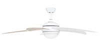 The Manhattan Ceiling fan comes in white finish on both the body and acrylic blades. Fit with a remote control feature. The ceiling fan is suitable for most rooms its placed in and is a practical addition for your home. Remote Control. Dimensions: Size H44, W140, D140cm, Diameter 140cm. 45cm drop. Bulb Information: Bulbs required 2 x golfball E27 edison screw filament LED (not included). Recommended maximum wattage: 10 watts. General Information: IP rating 20 - not suitable for bathroom use. Self-assemb...