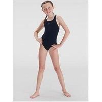 Speedo Girl/'s ECO Endurance+ Medallist Swimsuit, Comfortable, Stylish Design, Extra Flexibility, True Navy, 7-8 Years