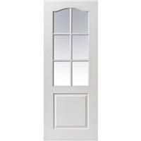 Classic white primed moulded 6-panel interior door with grained effect and 6 glazed apertures. * White primed * Primed * Moulded panel grained effect * Standard core construction * Clear flat safety glass with flush beading JB Kind Classique 6 Light Internal Door 35 x 1981 x 686mm in White Mdf