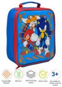 This fun Sonic the Hedgehog & Friends insulated lunch bag is an essential for your Sonic fan This cool and sleek insulated lunch bag, based on the inconic character, will keep your food fresh throughout the day. It comes complete with a convenient carry handle and a space for your name on the back. It measures 23 x 20 x 8cm, perfect for packing a tasty lunch. Polyester. BPA free. Size: H23, W20, D8cm. Internal H22, W19, D7cm. Wipe clean. Offers thermal insulation. EAN: 5053944943808. Manufacturers 1 yea...