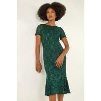 Metallic Lace Sequin Midi Dress from Roman. Crafted from a beautiful lace fabric with sequin detailing, this dress is fitted at the bust and flares out elegantly sculpting your silhouette, finished with a flared hem with godet paneling for extra swing in your step. In a beautiful shade, this dress is perfect for the upcoming party season. Wear yours with sparkly heels and clutch bag for a statement party look. - Manufacturers part numbers: 140282p|Roman_5054025475027