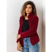 Soft Sherpa Fleece Jacket from Roman. Don't let the seasonal changes stop you with this sherpa fleece jacket. This lightweight, soft touch jacket is ideal for layering. It features a cosy high neckline that can be zipped all the way up or folded down and practical pockets. It has cosy full-length sleeves with elasticated cuffs and a fully open, zip front for a secure fit. Pair with relaxed denim, lightweight knitwear & boots for on-trend Autumn style! | Roman Women's Soft Sherpa Fleece Jacket in Burgundy | Size: Small - Manufacturers part numbers: 110072p|Roman_5054025833865