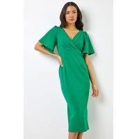 Gathered Wrap Front Midi Dress from Roman. Sleek and stylish, this scuba midi dress is versatile, flattering and chic for all your new season events. Made from a comfortable stretch fabric this pretty pencil dress also features short floaty angel sleeves, an on-trend midi length and cross over front detailing at the bodice. Ideal for looking glam at your special occasions, this timeless dress just needs high heels and a swipe of your favourite lipstick to help you shine this party season. - Manufacturers part number: Roman_5054025984871