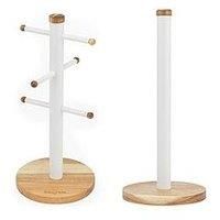 Salter Toronto Roll Holder & Mug Tree The Salter Toronto Mug Tree & Kitchen roll holder adds the elegance of acacia wood to your kitchen decor. The stylish 3-tier rack provides a convenient storage option for up to 6 mugs, offering easy-grab access to your favourite cups - right on the countertop! This freestanding paper towel holder not only keeps your kitchen roll easily accessible but also acts as a handy worktop organiser - great for keeping your kitchen neat! Say goodbye to cluttered cupboards as t... - Manufacturers part number: WHD0U