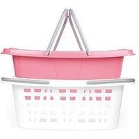 Beldray Set Of 2 Laundry Baskets Be organised with this set of 2 stackable laundry baskets from Beldray. Whether you are sorting laundry or tidying up, these durable and versatile baskets are here to make laundry day simple and stress-free! Each basket has a compact nesting design and is stackable, saving valuable space when not in use. With a 26L capacity, you can fill with bed linen, towels and still have space. Lightweight and easy to carry, these baskets have long handles to ensure a comfortable gri...