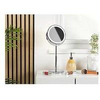 Beldray 7'' Telescopic Led Mirror - Chrome Perfect for makeup, shaving, or tweezing, our 7" mirror offers 1X true reflection and 3X magnification. Featuring three LED light modes-Cold White, Warm White, and Daylight-you can easily switch to suit your needs. It includes a USB charging cable for cordless use with the built-in rechargeable battery. The sleek, adjustable design fits on your bathroom counter, dressing table, or suitcase, combining style and convenience. Depth: 19 CM Height: 32.8 CM Materi...