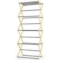 Beldray Bamboo 4 Tier Airer Dry clothes naturally with the Beldray 4 Tier Folding Clothes Airer. Featuring a strong bamboo frame and sturdy steel bars, it supports up to 15 kg. Ideal for heavy duty loads like towels and bed sheets, this airer has 8 metres of drying space. Practical and an efficient drying solution this airer is lightweight and has a concertina-style foldable design. This allows for compact storage, making it perfect for smaller homes or apartments. A stylish solution for all your indoor...