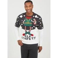 This novelty Christmas jumper from Brave Soul is the perfect festive piece. This quirky design features a crew neck with elf slogan, pom pom trims, embroidery details, PU belt buckle badge and ribbed collar, cuffs and hem. Pair with chinos to be the talk of the office Christmas party. Model wears UK size M. | Brave Soul Men Elf Slogan Novelty Christmas Jumper in Charcoal | Size: Medium