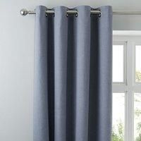 Complete with a modern eyelet header and available in a range of drop lengths, this pair of Tyla curtains come in a denim blue colour with a subtle textured print and have been made with a blackout lining to minimise external light entering the room.Also available in [Pencil Pleat ](https://www.dunelm.com/product/tyla-denim-blackout-pencil-pleat-curtains-1000146456) - Manufacturers part number: 30437629