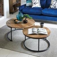 Dunelm Exclusive - Designed and Developed by DunelmInspired by contemporary and simplistic styling the Fulton range is a perfect statement piece to any living space. Made from durable materials with a metal tube base and unique matt finish, this self-assembly range features a rustic pine-effect finish with complementing black handles.Beautifully crafted in a circular design with solid edge finish, this set of tables comes complete with two assorted size tables that fit together neatly for easy storage.C... - Manufacturers part number: 30569979