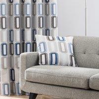 Decorated with a stylish geometric pattern with blue highlights, this square cushion features a smart, piped edge and has a removable cover for easy cleaning. Matching curtains are available.