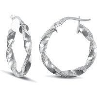 Welcome to Jewelco London and thank you for visiting! Jewelco London Ladies 9ct White Gold Frosted Edge Twisted 3mm Hoop Earrings 22mm. Fitted with classic snap down post for easy click-on. These classic hoop earrings will go with anything. Crafted in 9ct white gold with a twist design they are an essential part of any jewellery box.