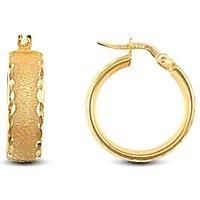 Welcome to Jewelco London and thank you for visiting! Jewelco London Ladies 9ct Yellow Gold Frosted Diamond Cut Wedding Band 6mm Hoop Earrings 19mm. Fitted with classic snap down post for easy click-on. A style essential these classic chic 9ct yellow gold court design hoop earrings are crafted with s delicate frosted and diamond cut finish to add a sophisticated touch to your look . Perfect for daily wear.