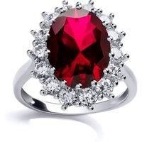Welcome to Jewelco London and thank you for visiting! Discover the exquisite allure of Jewelco London's newest addition to our 925 Sterling Silver Rhodium Plated jewellery collection. Behold a timeless masterpiece our resplendent cluster ring, meticulously crafted from 925 Sterling Silver and bathed in a radiant Rhodium finish that emulates the opulence of pure Platinum. At its heart, a magnificent oval centerpiece, an Oval cut Created Ruby of the deepest, most captivating Red Rose hue, commands attent...