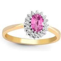 Welcome to Jewelco London and thank you for visiting! Jewelco London Conflict Free, Ladies Solid 9ct Yellow Gold Cluster Set Round H I2 0.12ct Diamond and Oval Pink 0.68ct Sapphire Classic Royal 9mm Cluster Ring.