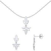 Welcome to Jewelco London and thank you for visiting! Jewelco London presents this piece from its latest collection of 925 Sterling Silver Rhodium Plated Jewellery. Ladies Rhodium Plated Sterling Silver Cubic Zirconia Sweetcorn Leaf Earrings Necklace Set . Includes a complimentary Rhodium-Plated Sterling Silver chain, which can be adjusted to 16, 18 or 20 inches. - Manufacturers part number: GSET611