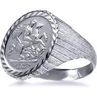 Welcome to Jewelco London and thank you for visiting! Suitable for everyday wear, this detailed St. George medallion ring features the Patron Saint of England astride his horse, in the act of slaying the dragon. George's victory over a creature widely considered to represent the devil symbolises his triumph over evil- for this reason, his likeness is often worn as protection against ill fate. This ring does NOT come with a Sovereign Coin. Rather it is set with a 925 Sterling Silver St George medal inse...